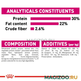 Информация о составе и ингредиентах, цветовом решении, технических и иных характеристиках, стране-изготовителе, внешнем виде и комплекте поставки товара носит справочный характер и основана на последних доступных к моменту публикации сведениях. Доставка данного товара осуществляется во все регионы РФ.Развитие ROYAL CANIN всегда обусловлено научными исследованиями. В ROYAL CANIN работает команда профессионалов – ветеринарных врачей и специалистов в области питания