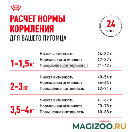 Полнорационный сухой корм для собак миниатюрных размеров весом до 4 кг в возрасте от 10 месяцев до 8 лет.