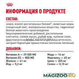 Информация о составе и ингредиентах, цветовом решении, технических и иных характеристиках, стране-изготовителе, внешнем виде и комплекте поставки товара носит справочный характер и основана на последних доступных к моменту публикации сведениях. Доставка данного товара осуществляется во все регионы РФ.Развитие ROYAL CANIN всегда обусловлено научными исследованиями. В ROYAL CANIN работает команда профессионалов – ветеринарных врачей и специалистов в области питания