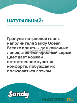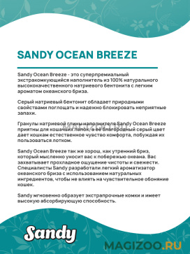 Sandy Ocean Breeze - это суперпремиальный экстракомкующийся наполнитель из 100% натурального высококачественного натриевого бентонита с легким ароматом океанского бриза.