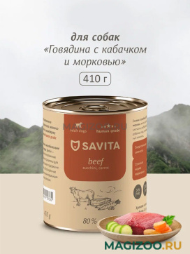 Беззерновые консервы класса холистик Savita - это сбалансированные натуральные рационы для собак с высоким содержанием мяса, обогащенные витаминно-минеральным комплексом