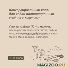 Полнорационные сбалансированные беззерновой влажный корм для собак с ягненком и морковью.
