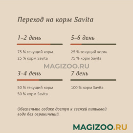 Беззерновые консервы класса холистик Savita - это сбалансированные натуральные рационы для собак с высоким содержанием мяса, обогащенные витаминно-минеральным комплексом