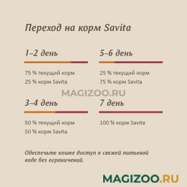 Беззерновые консервы класса Holistic Savita - это сбалансированные натуральные рационы для кошек с высоким содержанием мяса, обогащенные витаминно-минеральным комплексом.
