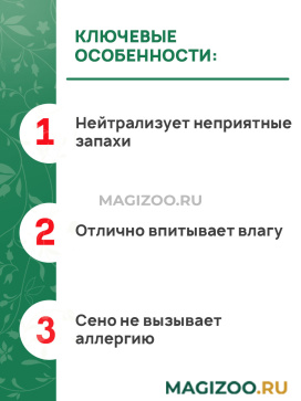 Сено станет для ваших питомцев мягкой и гигиеничной подстилкой, отлично впитывающей влагу и неприятные запахи.
