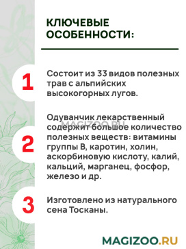 Правильно высушенное сено помогает деликатному пищеварению, а его приятный запах понравится не только маленькому питомцу, но и его хозяину.