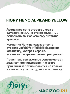 Компания Fiory использует сено второго укоса, так как оно содержит клетчатку, которая хорошо усваивается травоядными грызунами!