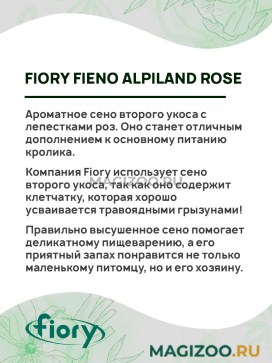 Компания Fiory использует сено второго укоса, так как оно содержит клетчатку, которая хорошо усваивается травоядными грызунами!