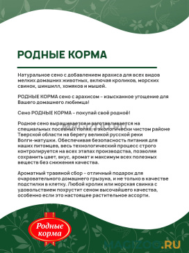 РОДНЫЕ КОРМА сено с арахисом – изысканное угощение для Вашего домашнего любимца!