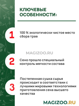 - Бережная ручная фасовка сохраняет структуру питательных волокон и исключает измельчение сена.