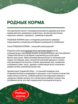 РОДНЫЕ КОРМА сено с плодами рожкового дерева – изысканное угощение для Вашего домашнего любимца!