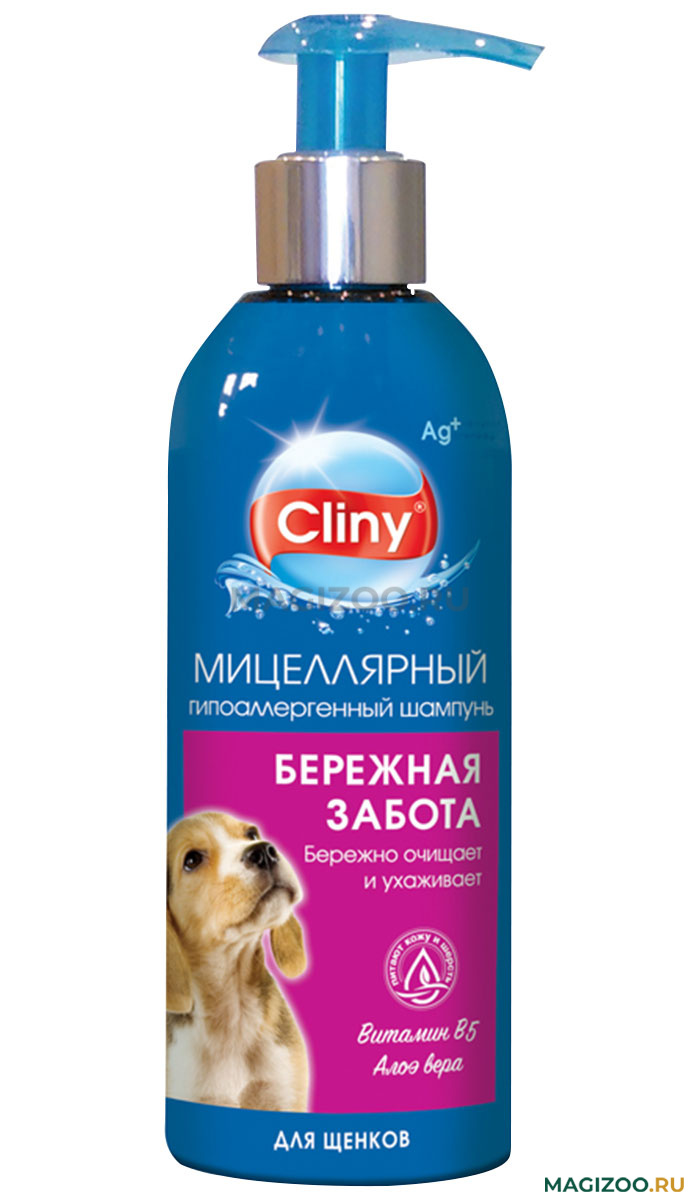 CLINY БЕРЕЖНАЯ ЗАБОТА это шампунь для щенков, созданный для бережного ухода за кожно-волосяным покровом.