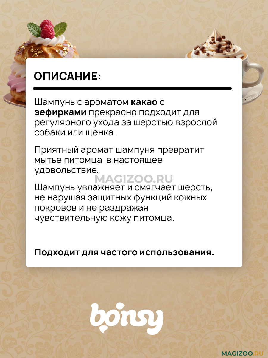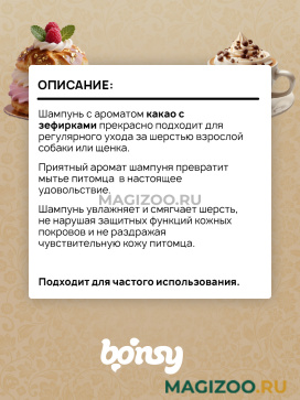 Шампунь с ароматом какао с зефирками прекрасно подходит для регулярного ухода за шерстью взрослой собаки или щенка.