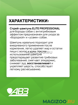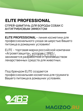 Спрей-шампунь ELITE PROFESSIONAL для бороды собак с антигрибковым эффектом предназначен для ухода за «бородкой» и «усами» собак.
