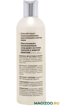 Сбалансированная комбинация составляющих компонентов обеспечивает великолепный уход даже за очень грязной и жирной шерстью, трудно поддающейся обработке обычными шампунями.