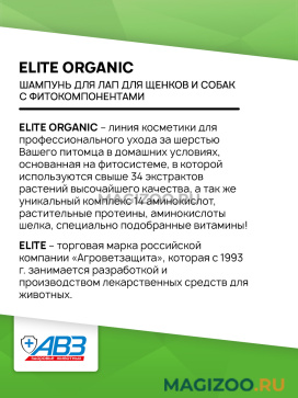 Шампунь для лап для щенков и взрослых собак с фитокомпонентами ELITE ORGANIC создан для ежедневного мытья лап и шерсти на животе после прогулок. Экстракты лекарственных растений защищают кожу и шерсть животного от агрессивного воздействия окружающей среды. Не раздражая кожу, шампунь для лап легко удаляет уличную грязь, мазут, техническую соль, одновременно увлажняя и смягчая кожу, а также способствуя быстрому заживлению мелких порезов и ссадин на лапах.