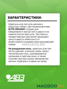 Elite organic с фитокомпонентами для лап - отличное косметически-гигиеническое средство! Купать после прогулки всю собаку каждый раз просто нет смысла, а вот лапы моем постоянно. Шампунь густой, с дозатором, аккуратно на лапы наносится и не растрачивается впустую. К тому же, как оказалось, эти фитокомпоненты на кожу влияют и это заметно - трещинки в самом деле заживают, как и обещается в инструкции.