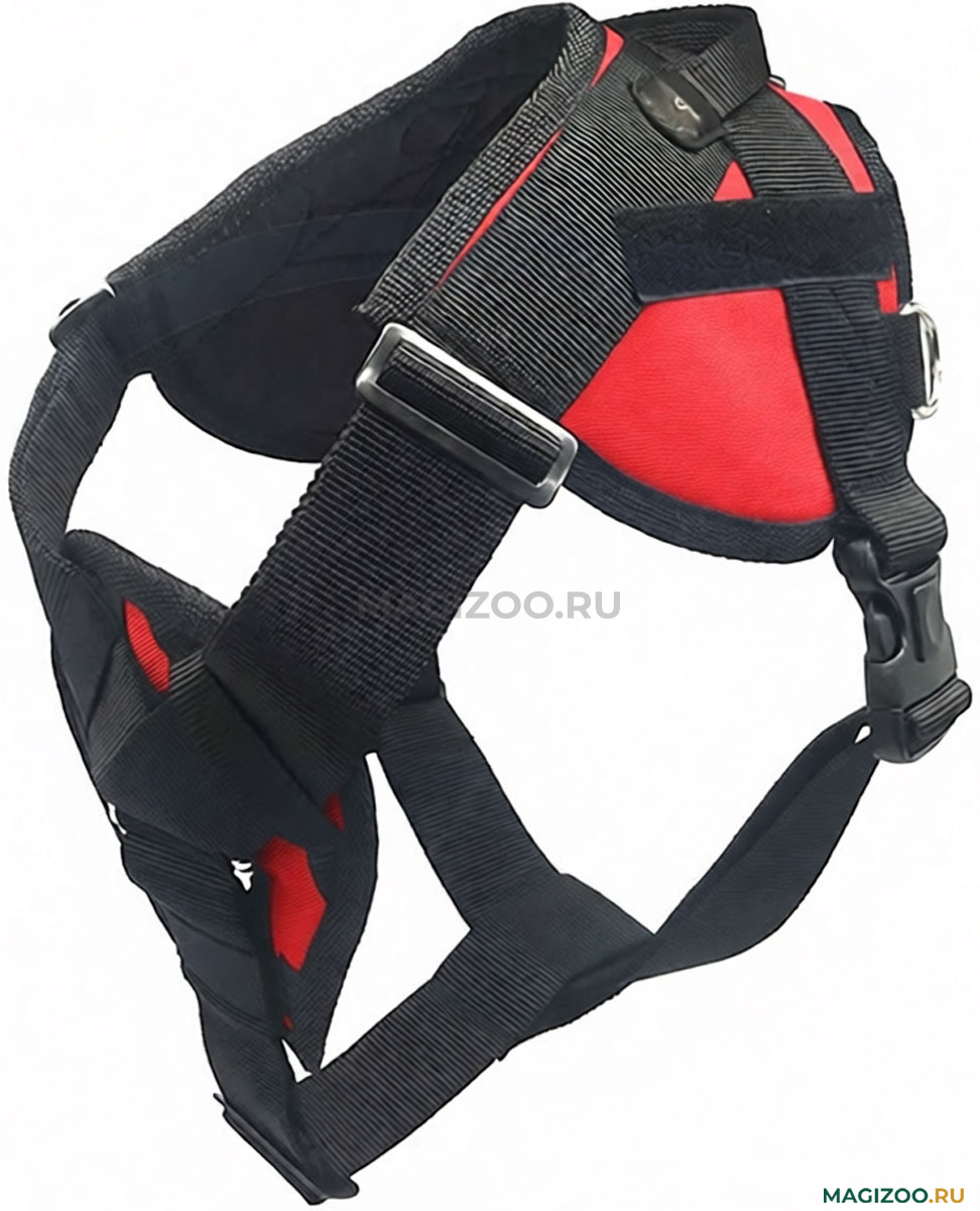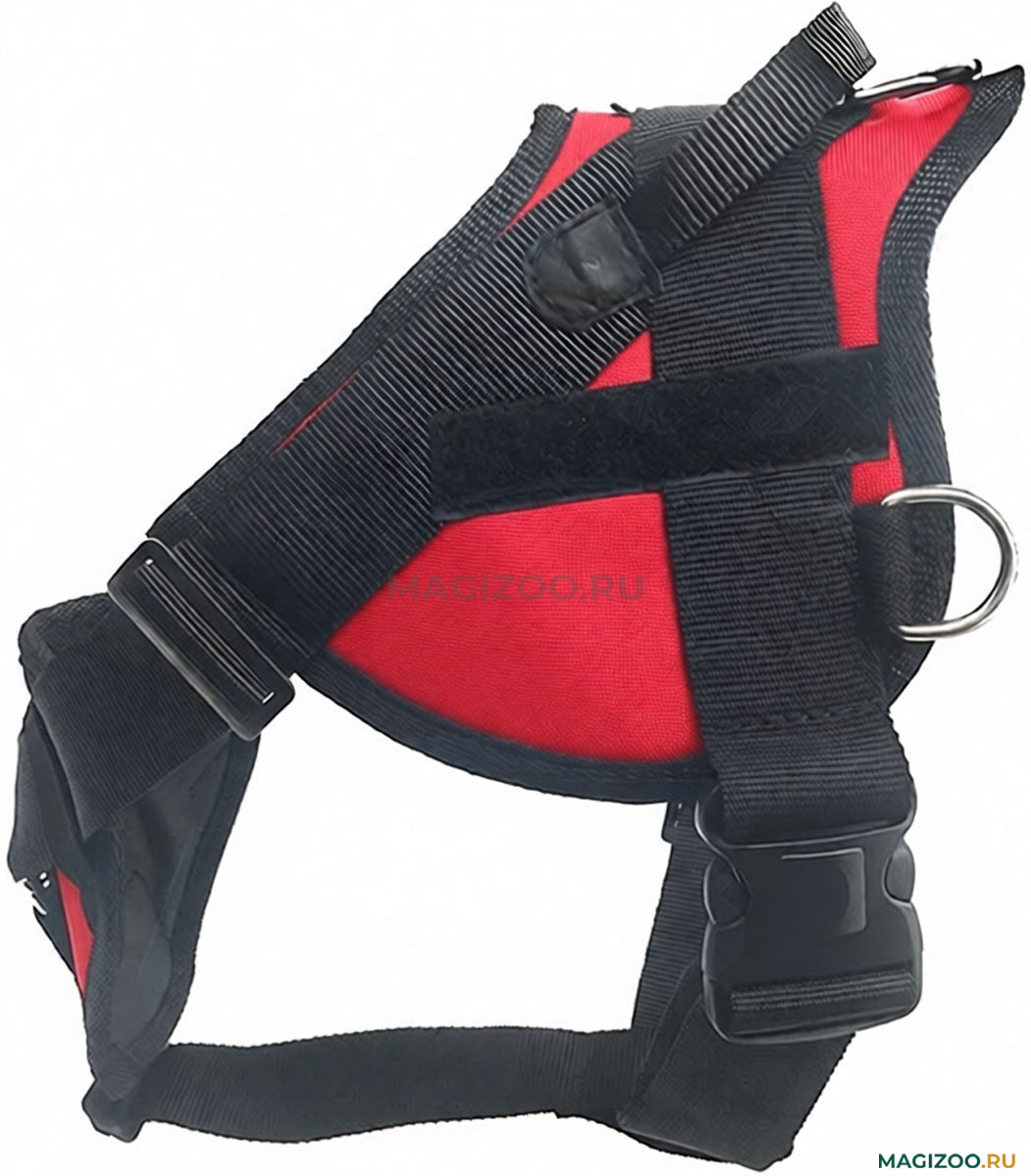 Шлейка рассчитана на ежедневное использование во время прогулок, занятий с собакой, а стальные полукольца, расположенные по бокам шлейки, позволяют использовать ее для буксировки саней, лыж или велосипеда.