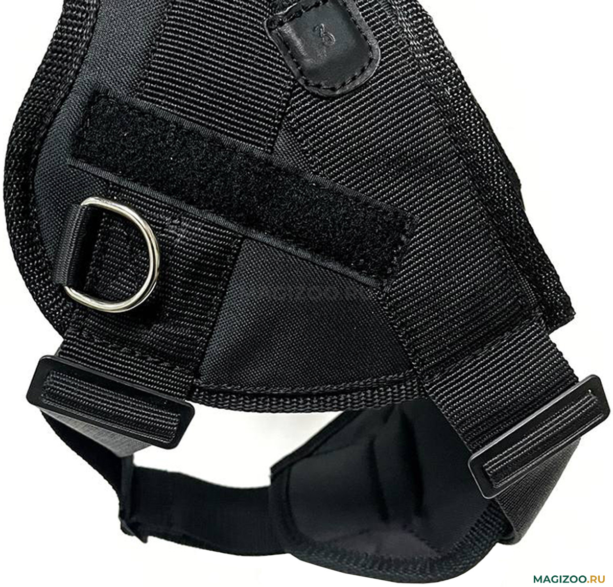 Так же тяговая шлейка имеет регулируемые ремни на груди и между передних лап, с целью максимально точной корректировки размера и надежного закрепления изделия.