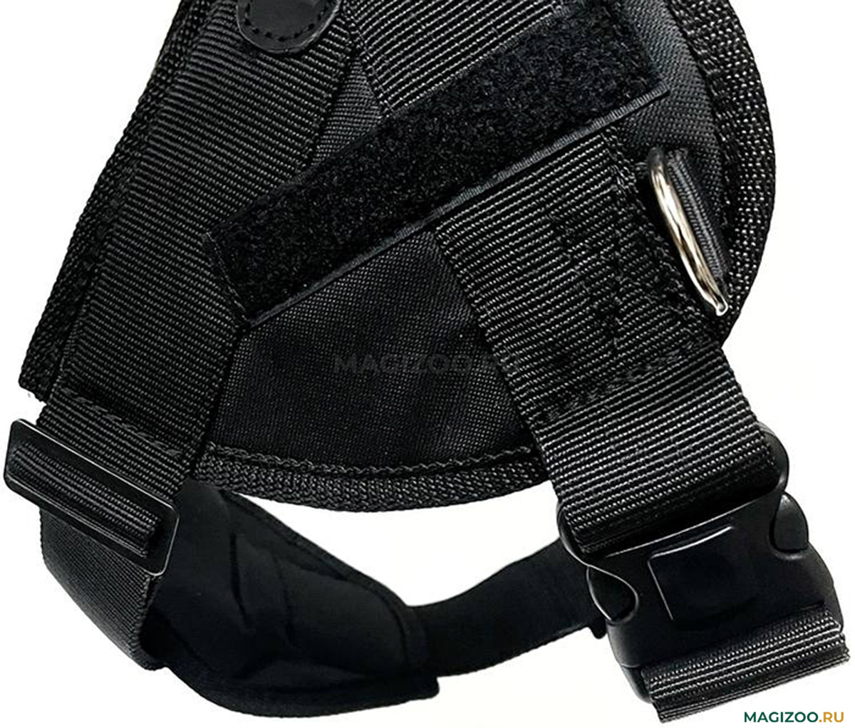 Шлейка рассчитана на ежедневное использование во время прогулок, занятий с собакой, а стальные полукольца, расположенные по бокам шлейки, позволяют использовать ее для буксировки саней, лыж или велосипеда.