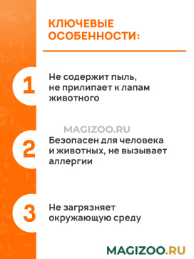 • Удобно (не содержит пыль, не прилипает к лапам животного)