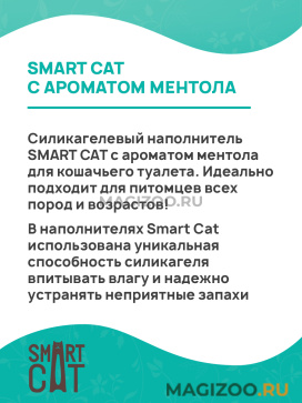 Силикагелевый наполнитель SMART CAT с ароматом ментола для кошачьего туалета. Идеально подходит для питомцев всех пород и возрастов!