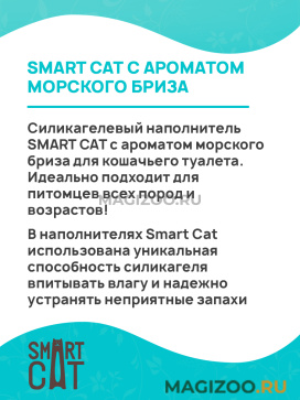 Силикагелевый наполнитель SMART CAT с ароматом морского бриза для кошачьего туалета. Идеально подходит для питомцев всех пород и возрастов!