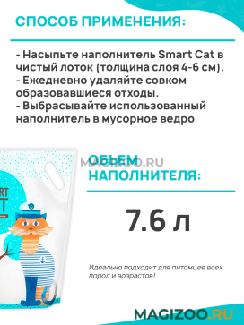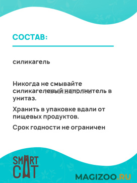 В наполнителях Smart Cat использована уникальная способность силикагеля впитывать влагу и надежно устранять неприятные запахи.