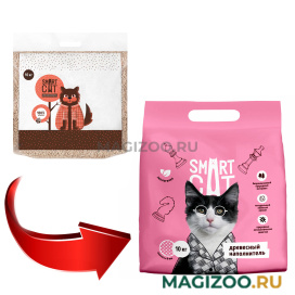 Древесный наполнитель Smart Cat мгновенно впитывает влагу и надежно устраняет неприятные запахи.