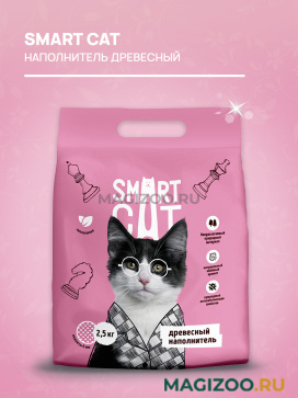 Древесный наполнитель Smart Cat мгновенно впитывает влагу и надежно устраняет неприятные запахи.