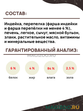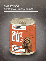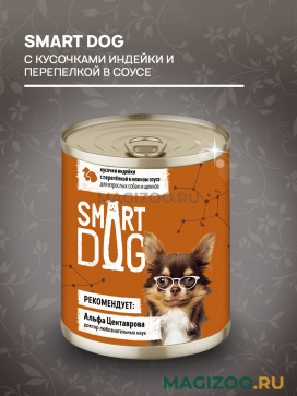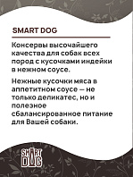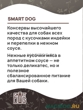 Влажный корм (консервы) SMART DOG для собак и щенков с кусочками индейки и перепелкой в соусе (240 гр)