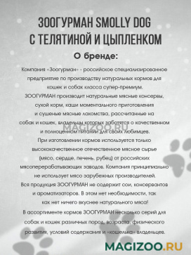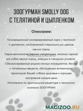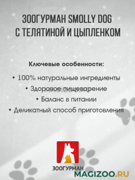 Влажный корм (консервы) ЗООГУРМАН SMOLLY DOG для щенков маленьких пород с телятиной и цыпленком (100 гр)