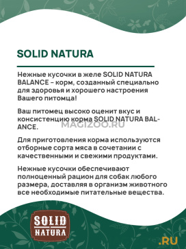 Нежные кусочки в желе SOLID NATURA BALANCE – корм, созданный специально для здоровья и хорошего настроения Вашего питомца!