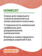 Отличный совок! Жаль, раньше не купила. Достаточно крупная сетка, остаются только твердые отходы и комки. Очень экономно расходуется наполнитель с тпким совком.