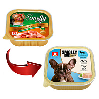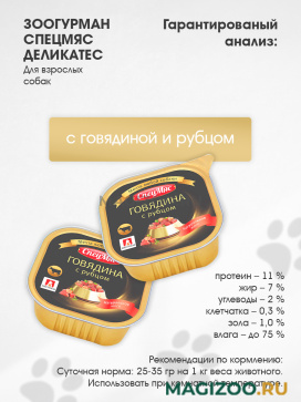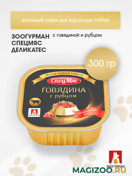 Полнорационный консервированный корм для взрослых собак всех пород с говядиной и рубцом.