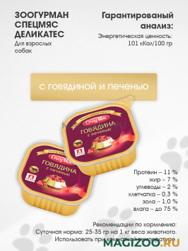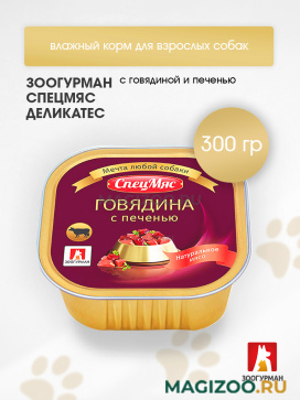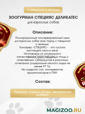 Полнорационный консервированный корм для взрослых собак всех пород с говядиной и печенью.