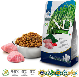 FARMINA N&D SPIRULINA – то линейка беззерновых кормов с высоким содержанием ингредиентов животного происхождения и спирулиной, овощами с превосходными питательными свойствами.