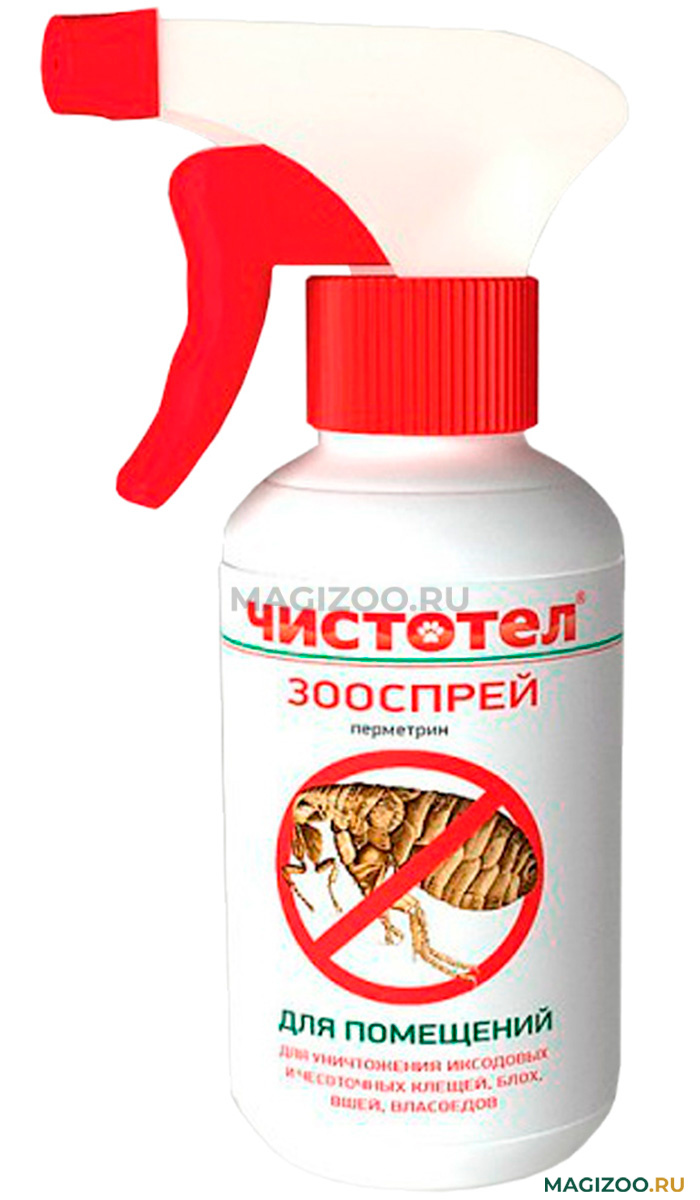 ЧИСТОТЕЛ спрей для обработки помещений и мест содержания животных от блох и других насекомых. Уничтожает насекомых и защищает от повторного появления их в квартире до 3 месяцев.
