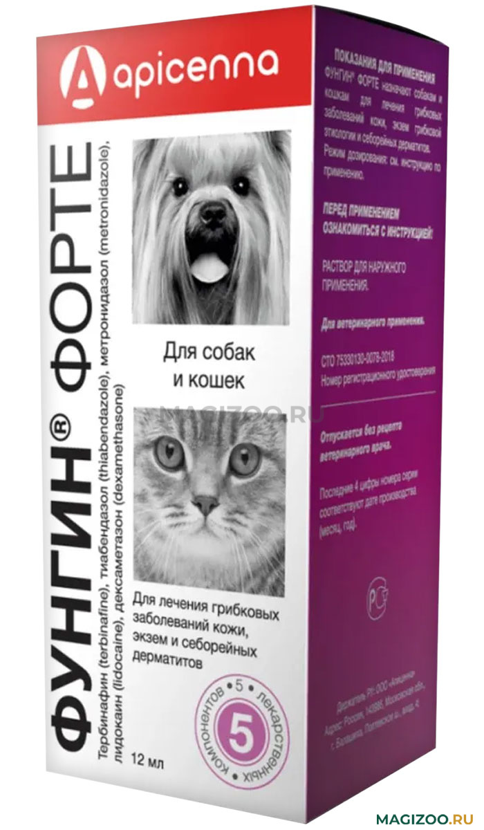Фунгин Форте назначают собакам и кошкам для лечения грибковых заболеваний кожи, экзем грибковой этиологии и себорейных дерматитов.