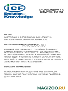 Шампунь для собак и кошек при поверхностных и глубоких пиодермиях и дерматофитозах.