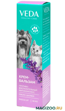 VEDA крем-бальзам с противовоспалительным фитокомплексом и маслом шалфея предназначен для ухода за проблемной кожей собак, кошек и других домашних животных.