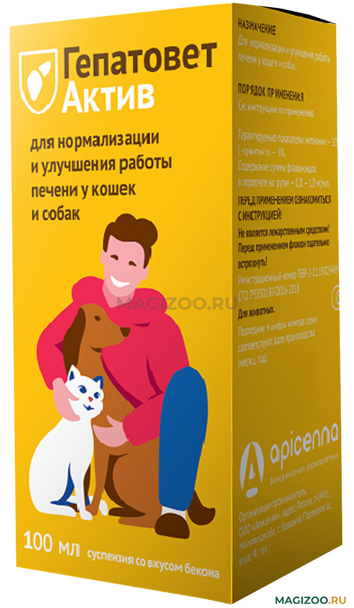 Гепатовет Актив — комплексный гепатопротектор для лечения и профилактики заболеваний печени у собак и кошек в форме суспензии с ароматом бекона.