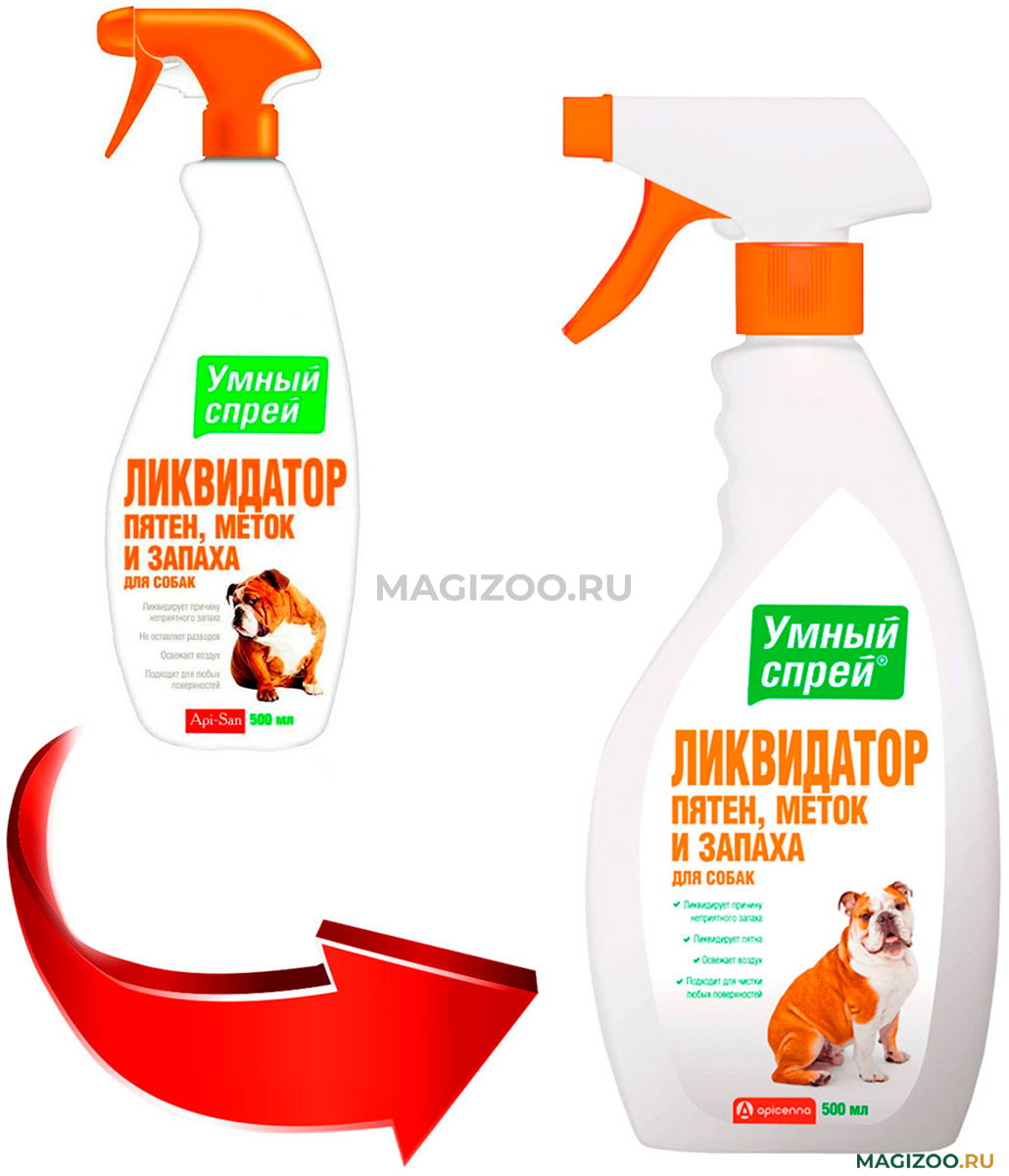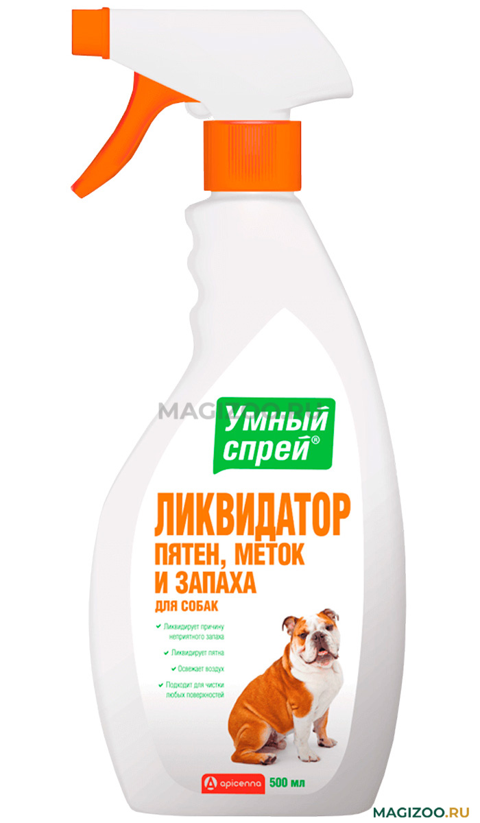 Зоогигиеническое средство в виде спрея, предназначенное для чистки твердых и мягких поверхностей и удаления запахов от животных.