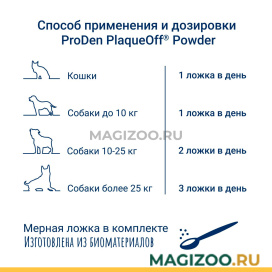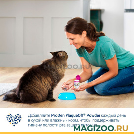 Добавляйте ProDen PlaqueOff Powder в сухой или влажный корм питомца один раз в день.