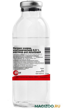 Натрия хлорид изотонический 0,9 % раствор для инъекций применяют животным при больших потерях организмом жидкости (кровотечения, токсическая диспепсия), явлениях шока, интоксикациях, метритах, вагинитах, а также для растворения различных лекарственных препаратов.
