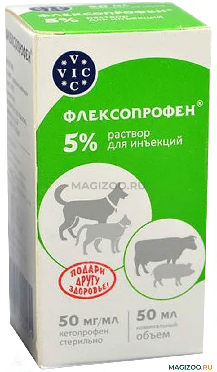 Флексопрофен применяют для лечения воспалительных заболеваний опорно-двигательного аппарата (артриты, артрозы, вывихи, отеки, грыжи межпозвоночных дисков, синовиты, тендосиновиты и т.п.), болевого синдрома различной этиологии (травматическая и послеоперационная боль, колики), а также гипертермии у собак, кошек, спортивных лошадей и телят.