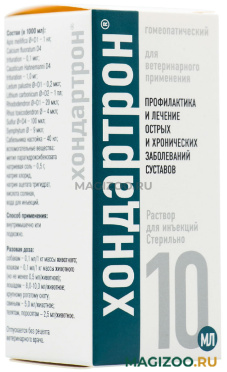 Гомеопатический препарат в виде раствора для инъекций назначается животным всех возрастных групп с лечебной целью при заболеваниях опорно-двигательного аппарата: артритах, бурситах, синовитах.