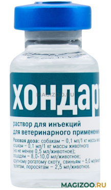 Хондартрон раствор для инъекций вводят животным подкожно или внутримышечно. Разовая доза препарата на одно животное составляет: