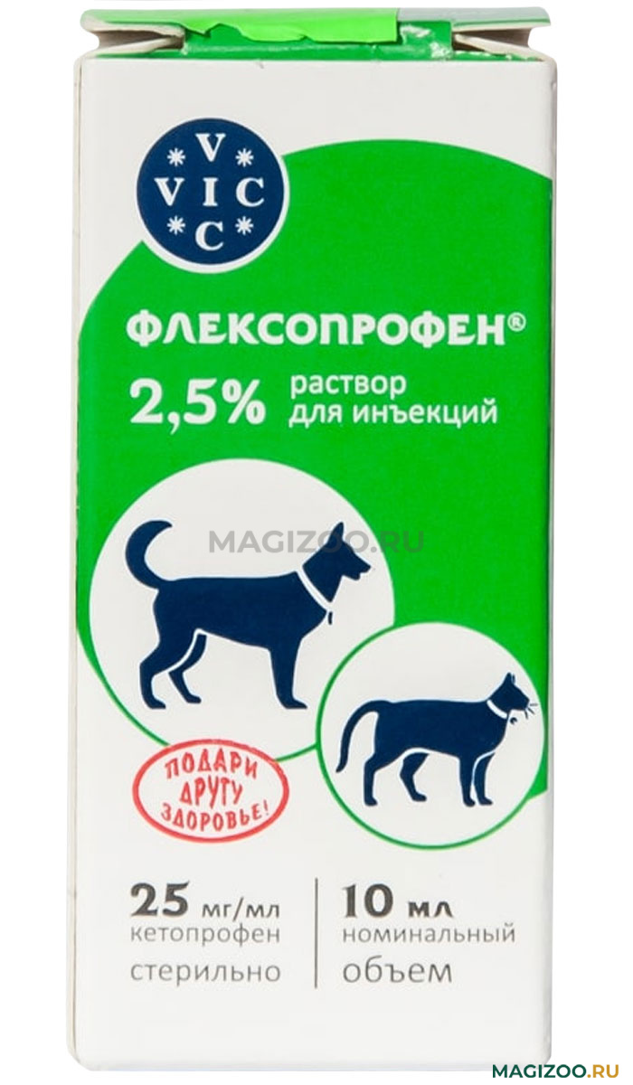 Флексопрофен 2,5%, 5% и 10% (Flexoprofen 2,5%, 5%, 10%) – нестероидное противовоспалительное лекарственное средство в форме раствора для инъекций, применяемое для лечения воспалительных заболеваний опорно-двигательного аппарата и в качестве обезболивающего и жаропонижающего средства у собак, кошек, спортивных лошадей и телят и содержащее в 1 мл в качестве действующего вещества 25, 50 и 100 мг кетопрофена соответственно, а в качестве вспомогательных веществ L-аргинин, бензиловый спирт, лимонную кислоту и воду для инъекций.