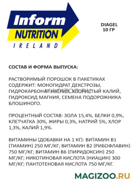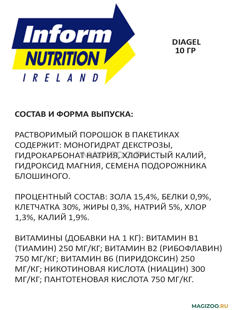 Препарат можно давать с кормом 2-3 раза в день или растворить в теплой воде: 5 гр Диагеля на 125 мл воды. В 1 ч. л. содержится около 5 гр порошка.